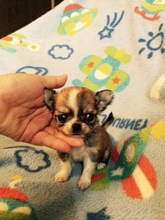 | コメント | 可愛いレッド&ホワイトの小さな男の子です。 とっても元気です。 瞳の綺麗なお鼻の短い小さな可愛いチワワをお探しの方に。 黒い差し毛は、だんだん抜けていきます。 実物の方が、ずっと可愛いですので是非見学にいらしてください。 6種ワクチン接種後、健康診断後のお渡しになります。 ワクチン代、お届けにかかる費用は、別途になります。 お気軽にお問い合わせください。 |