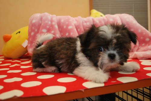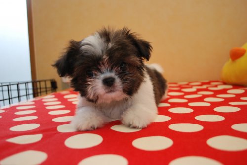 | コメント | シーズーのママとチワワのパパから誕生した愛嬌たっぷりのチワシーです! 容姿はほとんどシーズーですがパパのチワワが小ぶりなので、成犬時もシーズーほど大きくなりません。 7月18日現在体重 1,5㎏の極小サイズ めちゃくちゃかわいいです! ワクチン2回分込の価格です。 |