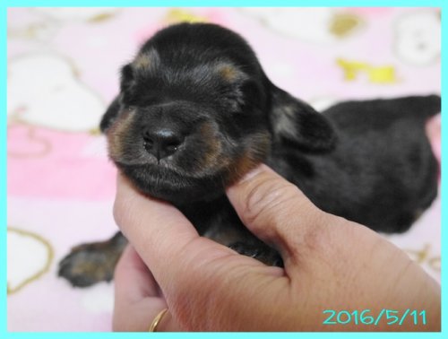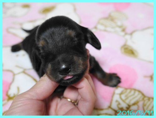 | 毛色 | ブラック&タン(パパは2か国チャンピオン。PRA安心です) | 出生地 | 千葉県 | |