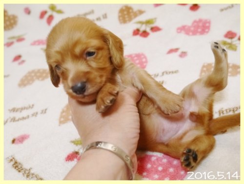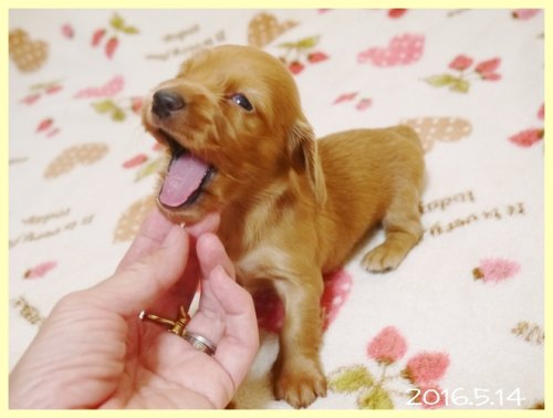 亡くなった愛犬達と同じ、 ワイヤーダックスの子犬を探していましたが、珍しい犬種という事もあり、 なかなか出会えませんでした。 諦めかけた頃、こちらのサイトで可愛い子犬を見つけ、思いきってメールをさせて頂きました。 遠藤ブリーダー様の迅速丁寧な対応で、 お陰様で無事に子犬を迎える事が出来ました。 本当にありがとうございました。 ブリーダーズ様にも感謝致します。 (北海道 女性)