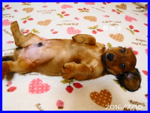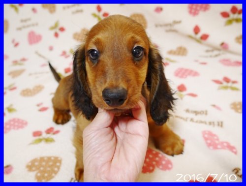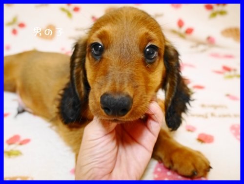| コメント | パパはJKCチャンピオンのレミィ君(レッド) ママはJKCチャンピオン直娘のちゅらちゃん(レッド)。 とっても血統が良くて、性格の穏やかでかわいらしいスタンダードロングダックスです。 毛色は成長と共に黒い刺し毛が少なくなってもう少し明るいレッドになります。 とにかく一度スタンダードダックスを飼ったことがある方は次に飼う子も絶対にスタンダードダックスしか考えられないとおっしゃる方が多いくらいに魅力たっぷりのダックスちゃんです。 今では見かけることもほとんどないレアな犬種となりましたが、小型犬でいて、その上存在感の大きなとても家庭犬として一緒に暮らしやすい犬種です。 人のいうことも良く理解をするし、性格も穏やかで人懐こい性格です。 成犬時の体重はだいたい8キロから13キロ位の間です。 ぜひ直接ご見学いただければと思います。(成犬にも会っていただけます。) ワクチン接種と健康診断済みです。7月25日以降にお迎えいただけます。お問い合わせをお待ちしております。 |