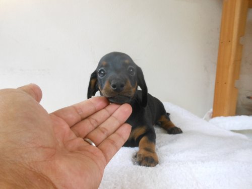 ミニチュア・ダックスフンド(スムース) ブラック&タン 父カニンヘン ♂(男の子) 大阪府【 ブリーダーズ 】