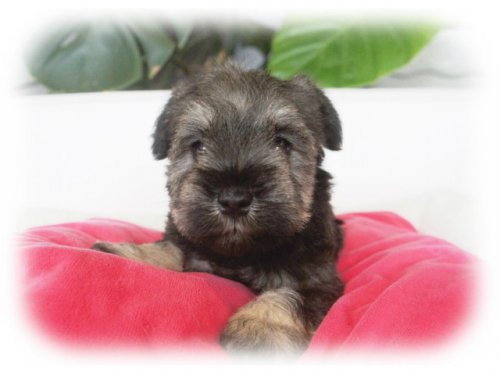 見学の申し込みからの対応も凄く良くて、当日の応対も非常に親切に的確に対応して貰えました。その場で直ぐにこの真摯な対応ができる人が繁殖させたワンコなら心配ないと思ったので内金を払い2週間後の昨日ワンコを引き取ることに致しました。ワンコを連れて新幹線に乗るのは初めてだったのでどんなもキャリーケースを用意して良いのか判らなかったので、準備をお願いしておいたところちゃんとした物を用意しておいてくれました。書類の説明や今後の飼い方その他に付いても質問にも丁寧に受け答えをしてくれて有難かったです。引渡し前にちゃんとシャンプーもされていたらしく良い匂いでした。この子でシュナウザーは4頭目ですが、今までにはこれほど手厚い対応をして貰ったのは初めてです。有り難うございました。(東京都 男性)