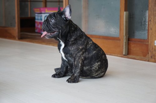 フレンチブルドッグ ブリンドル ☆優良血統!骨量抜群!☆ 赤リボン君 ♂(男の子) 鹿児島県【 ブリーダーズ 】