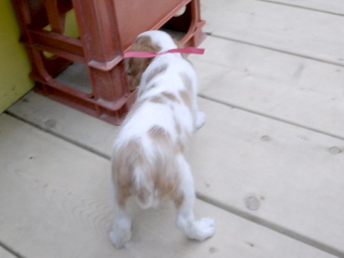 この度はとっても元気な子をありがとうございました。 見学の際は駅まで迎えにきていただき、説明もとても丁寧で安心しました。 空輸で送っていただき、ありがとうございました。 迎えてから一週間が経ち、家にも慣れて、へそ天で寝ています。 トイレトレーニングも、来た時から8割できていて、今ではほとんど失敗しなくなりました。 可愛く元気で、毎日元気に飛び跳ねています。(奈良県 女性)