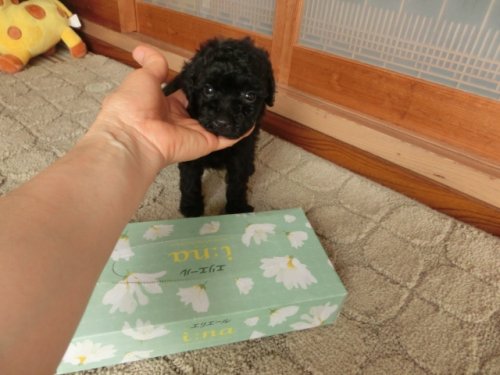 石原様、この度は愛らしいトイプードルの仔犬との素敵なご縁を頂戴しましたこと、心から感謝いたしております。 石原様との幾度のやりとりを重ね、生まれてから私の手元に来てくれるまで、石原様御夫婦の愛情をたっぷり受け、大切に育てていただいた事がよくわかりました。更に先住犬との関係性及び育て方等についてもご助言いただき、大変に助かりました。 また仔犬のお迎えについても、熊本から離れた場所にいる私にとっては悩みの種ではありましたが、その点についてもご配慮いただき、最終的にはスムーズに仔犬を我家に迎えることができ、ゴールデンウィークは賑やかな日々となりました。 これから、先住犬同様、大切には育てて参ります。 この度は素敵なご縁をありがとうございました。(山口県 女性)