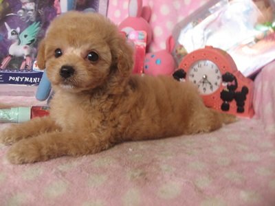 | コメント | お父さん・・プードル お母さん・・チワワ お目目がぱっちり女の子の様な 優しいお顔の男の子です 淡いクリームの色合いが 可愛らしいです 胸と顎に少し白い毛があって クリームとのコントラストが ほんわか優しく見えます 表情豊かで笑顔が可愛らしい子です 大人になって2,5㎏前後の 可愛いサイズの仕上がり予想です 健康診断、1回目のワクチン済みです |