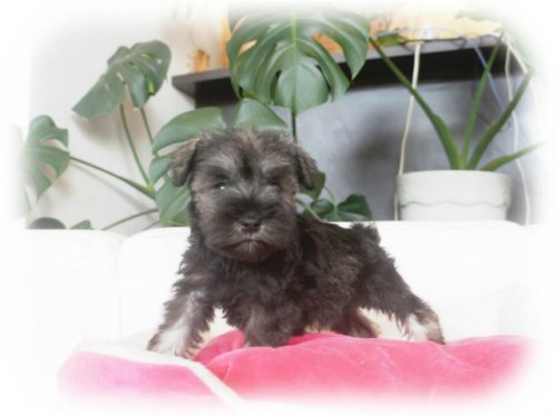 | 毛色 | ソルト&ペッパー(小振りさん♪パパJKCチャンピオン) |