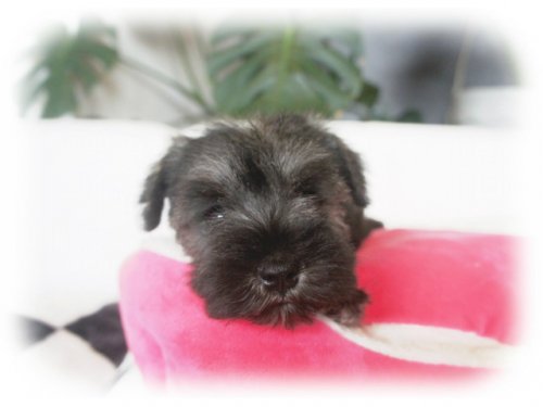 見学の申し込みからの対応も凄く良くて、当日の応対も非常に親切に的確に対応して貰えました。その場で直ぐにこの真摯な対応ができる人が繁殖させたワンコなら心配ないと思ったので内金を払い2週間後の昨日ワンコを引き取ることに致しました。ワンコを連れて新幹線に乗るのは初めてだったのでどんなもキャリーケースを用意して良いのか判らなかったので、準備をお願いしておいたところちゃんとした物を用意しておいてくれました。書類の説明や今後の飼い方その他に付いても質問にも丁寧に受け答えをしてくれて有難かったです。引渡し前にちゃんとシャンプーもされていたらしく良い匂いでした。この子でシュナウザーは4頭目ですが、今までにはこれほど手厚い対応をして貰ったのは初めてです。有り難うございました。(東京都 男性)