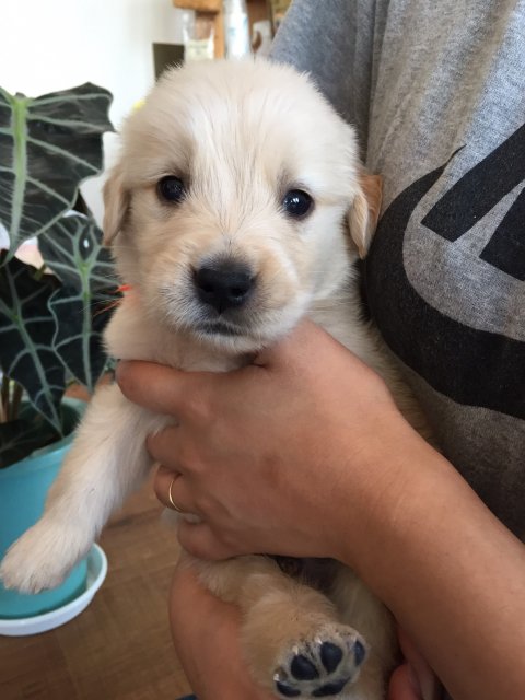 8月に十年間飼っていたゴールデンを病気で無くし、新しい犬を飼おうか迷っていた時このサイトを見つけ中村ブリーダーの仔犬に一目惚れしてしまい、夜分でしたが連絡を入れさせていただきましたが直ぐにお返事頂きビックリでした。 引き取りに伺った時も母犬や兄弟たちにも逢わせてい頂き優しい御夫妻の人柄が良く伺えました。 帰るときも「遠くからおいでなので」と離乳食やウエットティッシュ、ゴミ袋、水、食事用のカップまで用意していただき恐縮してしまいました。 お見送りの時の寂しそうな顔が印象的でした。 大事に育てます。 ありがとうございました。 (岐阜県 男性)