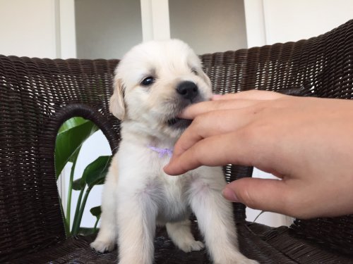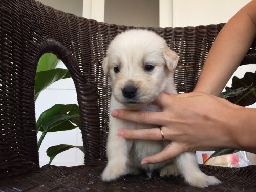 8月に十年間飼っていたゴールデンを病気で無くし、新しい犬を飼おうか迷っていた時このサイトを見つけ中村ブリーダーの仔犬に一目惚れしてしまい、夜分でしたが連絡を入れさせていただきましたが直ぐにお返事頂きビックリでした。 引き取りに伺った時も母犬や兄弟たちにも逢わせてい頂き優しい御夫妻の人柄が良く伺えました。 帰るときも「遠くからおいでなので」と離乳食やウエットティッシュ、ゴミ袋、水、食事用のカップまで用意していただき恐縮してしまいました。 お見送りの時の寂しそうな顔が印象的でした。 大事に育てます。 ありがとうございました。 (岐阜県 男性)