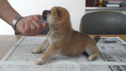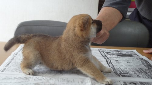 初めて見学で伺った際に、並んで日向ぼっこをしている親犬たちを見て、その時点で高橋さんなら安心だと感じました。事前に希望していたこともあり、母犬と父犬を先に見せていただきましたが、母犬のあまりの人懐こい性格にやられてしまい、実は子犬を見る前に是非譲っていただこうという気持ちになっておりました。 見学の時、譲渡の時といろいろな話をさせてもらい、小さな気付きなども折り込んで教えてもらえるのでやはり柴犬ならこうした専門の方が信頼出来ます。 子犬が我が家に来て二週間が経ち、きょうだいのなかでも一回り小さかったこともあり、やはり成長もやや遅い感じではありますが、母性を刺激された先住犬が頑張って見守ってくれており、予想外ではあるものの家族全員一安心です。 この度は本当にありがとうございました。この子が幸せになれるよう精一杯向き合っていきます。 なお、今後検討されている方への注意事項をひとつだけ書いておきます。問い合わせや見学希望に対しての高橋さんからの返信は電話です。メールでの返信ではありませんので気を付けてください。(宮城県 男性)