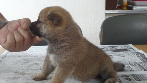 初めて見学で伺った際に、並んで日向ぼっこをしている親犬たちを見て、その時点で高橋さんなら安心だと感じました。事前に希望していたこともあり、母犬と父犬を先に見せていただきましたが、母犬のあまりの人懐こい性格にやられてしまい、実は子犬を見る前に是非譲っていただこうという気持ちになっておりました。 見学の時、譲渡の時といろいろな話をさせてもらい、小さな気付きなども折り込んで教えてもらえるのでやはり柴犬ならこうした専門の方が信頼出来ます。 子犬が我が家に来て二週間が経ち、きょうだいのなかでも一回り小さかったこともあり、やはり成長もやや遅い感じではありますが、母性を刺激された先住犬が頑張って見守ってくれており、予想外ではあるものの家族全員一安心です。 この度は本当にありがとうございました。この子が幸せになれるよう精一杯向き合っていきます。 なお、今後検討されている方への注意事項をひとつだけ書いておきます。問い合わせや見学希望に対しての高橋さんからの返信は電話です。メールでの返信ではありませんので気を付けてください。(宮城県 男性)