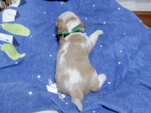 | コメント | お父さんがJKCチャンピオンの吉宗君、お母さん小柄なチャンピオン直子のライザちゃんから生まれたダンディーな男の子です(緑リボン君) チャンピオン直子 |