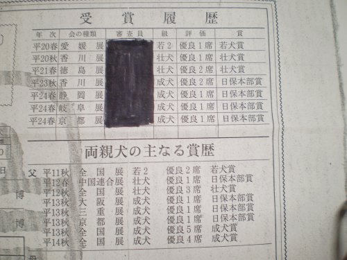 父系は四国の有名犬舎です。受賞歴です。