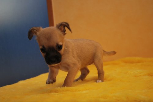 | コメント | ジャックラッセル・テリアのママとチワワのパパから誕生した「チワジャック」です。 あまりいないと思います。 成犬時のサイズはジャックラッセル・テリアよりは小さくなると思います。 7月29日現在体重 700g お引渡しは8月上旬になりますがご予約承ります。 ワクチン1回分込の価格です。 |