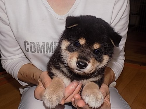 メール・電話でやり取りをし、本日待ち合わせ場所で子犬を見せていただき、とても可愛い子で気に入ったので、そのまま連れて帰りました。待ち合わせはこちらのお願いした所まで来てくださり、助かりました。亀井ブリーダーも奥様も優しそうな方で、愛情をもって犬と過ごしている姿が容易に想像できます。キャリーや数日分のフードなどなども頂き、とても良心的でした。お心遣いありがとうございました。(広島県 女性)