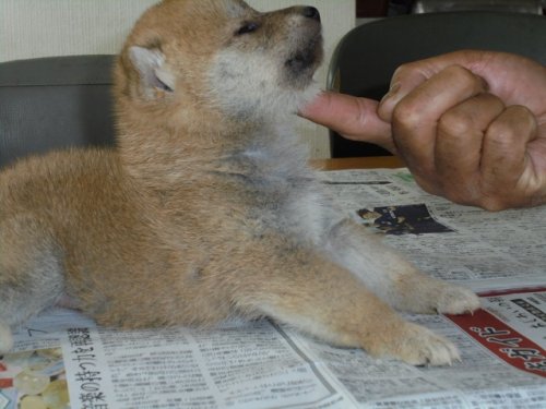 初めて見学で伺った際に、並んで日向ぼっこをしている親犬たちを見て、その時点で高橋さんなら安心だと感じました。事前に希望していたこともあり、母犬と父犬を先に見せていただきましたが、母犬のあまりの人懐こい性格にやられてしまい、実は子犬を見る前に是非譲っていただこうという気持ちになっておりました。 見学の時、譲渡の時といろいろな話をさせてもらい、小さな気付きなども折り込んで教えてもらえるのでやはり柴犬ならこうした専門の方が信頼出来ます。 子犬が我が家に来て二週間が経ち、きょうだいのなかでも一回り小さかったこともあり、やはり成長もやや遅い感じではありますが、母性を刺激された先住犬が頑張って見守ってくれており、予想外ではあるものの家族全員一安心です。 この度は本当にありがとうございました。この子が幸せになれるよう精一杯向き合っていきます。 なお、今後検討されている方への注意事項をひとつだけ書いておきます。問い合わせや見学希望に対しての高橋さんからの返信は電話です。メールでの返信ではありませんので気を付けてください。(宮城県 男性)