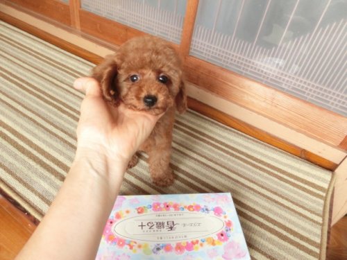 石原様、この度は愛らしいトイプードルの仔犬との素敵なご縁を頂戴しましたこと、心から感謝いたしております。 石原様との幾度のやりとりを重ね、生まれてから私の手元に来てくれるまで、石原様御夫婦の愛情をたっぷり受け、大切に育てていただいた事がよくわかりました。更に先住犬との関係性及び育て方等についてもご助言いただき、大変に助かりました。 また仔犬のお迎えについても、熊本から離れた場所にいる私にとっては悩みの種ではありましたが、その点についてもご配慮いただき、最終的にはスムーズに仔犬を我家に迎えることができ、ゴールデンウィークは賑やかな日々となりました。 これから、先住犬同様、大切には育てて参ります。 この度は素敵なご縁をありがとうございました。(山口県 女性)