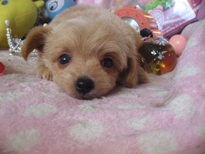 | コメント | お父さん・・チワワ お母さん・・プードル まんまるお目目が可愛い子です クリームの色合いがとっても 可愛く毛量も有りもこもこです 頭と胸に有る白い毛が可愛い とっても明るい性格で 愛嬌が有り元気一杯です ご飯も良く食べ順調に成長 して居ります 大人になって2.5㎏~3㎏以内の 可愛いサイズの仕上がり予想です 健康診断済みです |