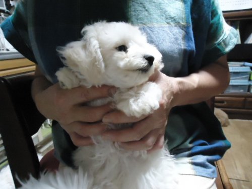 この度ご縁がありまして村島ブリーダーさんから可愛いマルチーズの男の子を譲って頂きました。犬を飼うことは初めてだったのですが2度ほど見学し、アドバイスも頂き、安心して子犬を迎えることができました。何かあれば電話でいつでも相談にのって下さるとのことで心強いです。子犬もとても元気でおトイレもすぐに覚えてとってもいい子です。ありがとうございました。(栃木県 女性)
