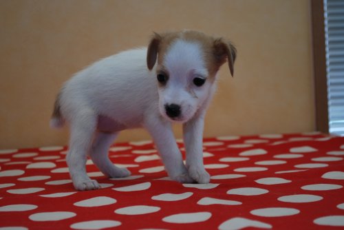 | コメント | 愛嬌たっぷりのジャックラッセル・テリア 楽しい家族になりますよ! 両親の毛質はブロークン この子の毛質はまだわかりません。 7月29日現在体重 680g お引渡しは8月上旬になりますがご予約承ります。 ワクチン1回分、血統書代込の価格です。 |