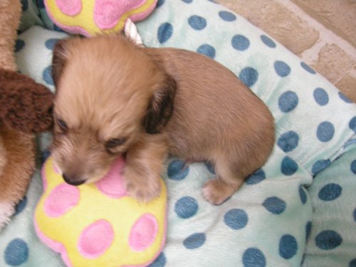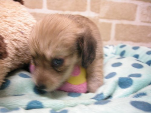 ミニチュア・ダックスフンド(ロング) シェイテッドクリーム!お父さんカニヘンPRAクリアーイケメン君! ♂(男の子) 大阪府【 ブリーダーズ 】
