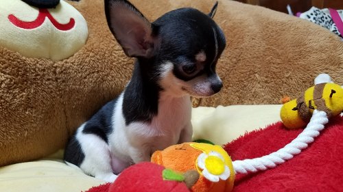 | コメント | 小さくて、可愛い両親から生まれた自慢の息子です。 大人になっての体重は2キロ前後の予想です。 生涯愛育してくださる方とのご縁をお待ちしております。 お近くでしたら見学にいらしてください、遠方の方でしたら、お届け可能ですので、お問い合わせください。宜しくお願いします。 |