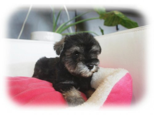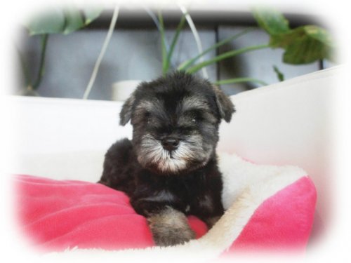 | 毛色 | ソルト&ペッパー(両親ともにJKCチャンピオン!小振りちゃんです) | 出生地 | 大阪府 | |