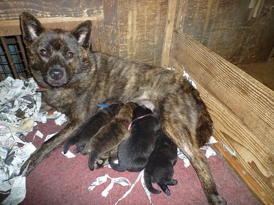 | コメント | 父:差尾が魅力的な中虎毛、人にはフレンドリーな巨摩狼直系の牡。 母:非常にフレンドリーなお母さん。愛情深く子育て中です。 運動能力、スタミナ共に抜群ですが、聴き訳がいいので手こずる事はありません。 祖母は巨摩狼直系ですが重責血液による弊害予防の観点からこの母犬には巨摩狼系とは異なる血液を挿入しています。 祖父(母の父)は「志村動物園」のペロミの兄です。 この子は元気いっぱいで、フレンドリーな仔に育つと思います。 |