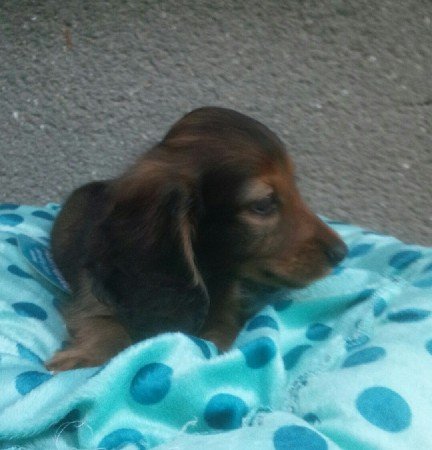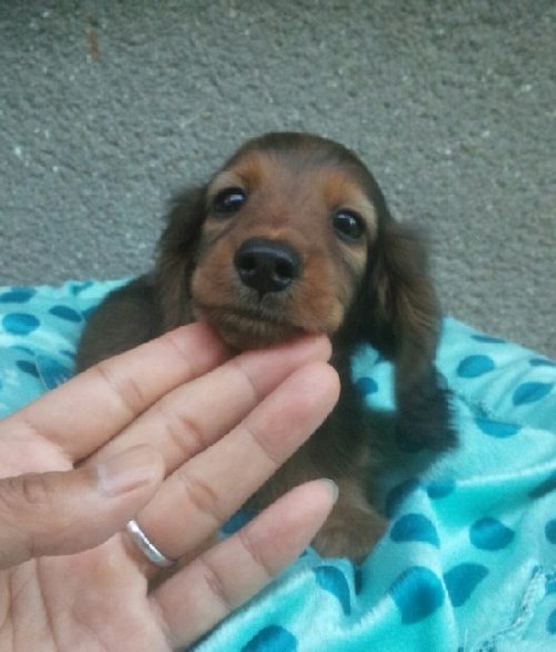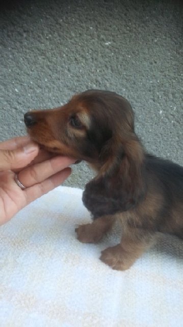 約束の時間より早く到着したのですが、上山さんと、お母様に心よく迎えて頂き、親切で丁寧な対応、ありがとうございました。 ネットで見たダックス君も可愛かったですが、実際に見たダックス君は、想像以上に可愛く、とても良かったです。 帰ってからも、電話で様子など聞いて頂き、嬉しかったです。 可愛い、ダックス君と巡り会えて、有難うございました。(大阪府 女性)