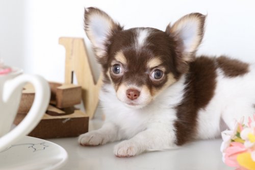 チワワ(ロング) チョコタン&ホワイト ♀(女の子) 大阪府【 ブリーダーズ 】