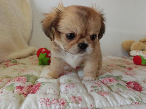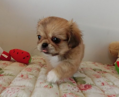 | コメント | ペキニースのママとチワワのパパから生まれました。 お鼻はぺちゃんこで短足ちゃん♪ コロコロ歩く姿がとっても可愛い子です! 離乳食もよく食べています。 毎日ママや兄弟と仲良く遊びながら社会勉強しています。 お写真ではこの子の可愛さが伝わり切れません。 是非ご見学にお越しください。 |