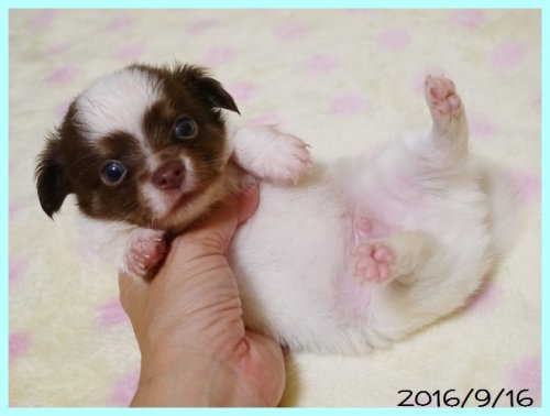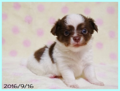 チワワ(ロング) ホワイト&チョコレート(チョコパーティ) ♂(男の子) 千葉県【 ブリーダーズ 】