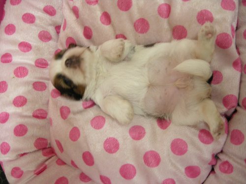 | 引渡可能日 | ワクチン接種後、生後50日前後より かつ、ちゃんと乳離れしてからです。 ※動物愛護法の改正に伴い生後56日未満の子犬の引き渡しは禁止されております。 生後56日未満であっても購入検討のために犬舎見学をすることは可能です。 (柴犬等の日本犬6犬種については例外で上記の生後56日未満が生後49日未満となります) |