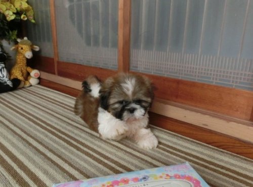 シーズー ゴールド&ホワイト:身体左右対称の綺麗な模様陽気で無駄吠えの無い子 ♂(男の子) 熊本県【 ブリーダーズ 】