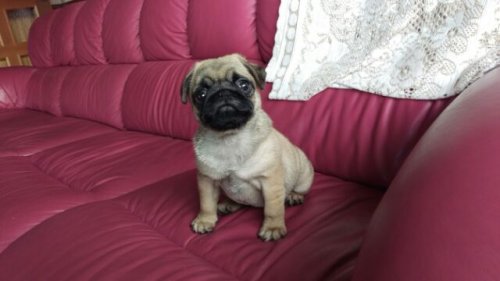 ネットで沢山のパグの子犬を見てきたところ家族みんながこの子を 家族に迎えたい!!と思い問いあわせ、遠方なので不安でしたが とても気さくなブリーダーさんで色々教えていだだき不安なく迎えることができました。 とても可愛い愛嬌ある顔で吠える事もなくたっぷり愛情を与えながら大切にしていきます。こんな可愛い子に出会えた事に感謝です!!(静岡県 女性)