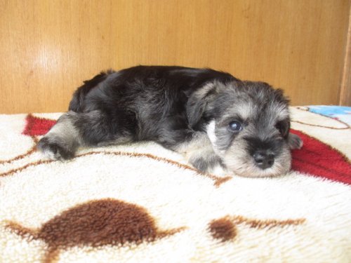 以前からミニチュアシュナウザーを飼っていたのですが8月初めに」16歳で亡くなりもう飼わないつもりでしたが居なくなると寂しく ネットで探すだけと思い見ていたらここのワンちゃんと 出会いブリーダーさんに色々質問してしまい快くお返事を頂きブラック&シルバーの子が前から可愛いと思っていたのですが 迷いました ブリーダーさんにお会いしないといけないのは参りました 私は東京ブリーダーさん福岡 福岡まで迎えに行く電車賃&宿代を出してもたまたま東京で買う金額と変わらなかったので良かったです ブリーダーさんには本当に良くしてもらいました しつこく質問しても必ず返信してくれました この子を大事に育てていきます 色々有り難う御座いました これからも頑張ってください (東京都 男性)