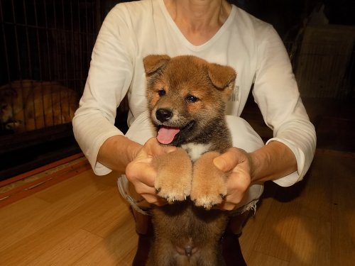 亀井さんとメールや電話で12月13日に待ち合わせ場所で仔犬を初めて見せていただき、ネットで見ていた仔犬よりも、とても可愛い仔犬で気に入りました。亀井さんと奥様も優しそうな方で、愛情をもって犬と過ごしていると想像します。又、リードや数日のフードなども頂きとても良心的で感謝しています。有難うございました。 (和歌山県 男性)(和歌山県 男性)