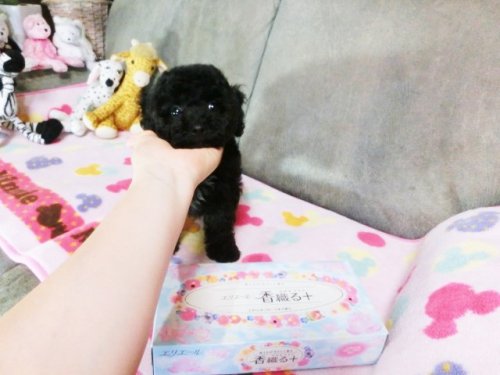 トイプードル ブラック:胸の白毛がチャームポイント陽気な小ぶりちゃん ♀(女の子) 熊本県【 ブリーダーズ 】