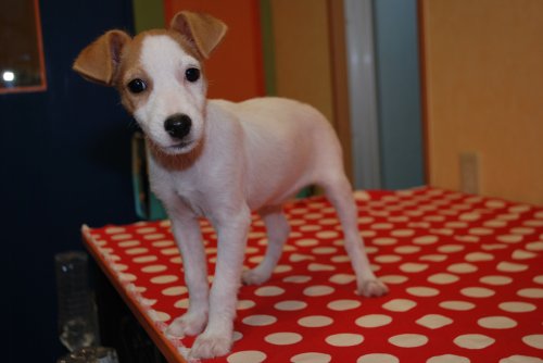 | コメント | 愛嬌たっぷりのジャックラッセル・テリア 楽しい家族になりますよ! 母親の毛質はスムース、父親はブロークン この子の毛質はスムースです。 10月2日現在体重 2.9㎏ ワクチン2回分、血統書代込の価格です。 |