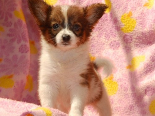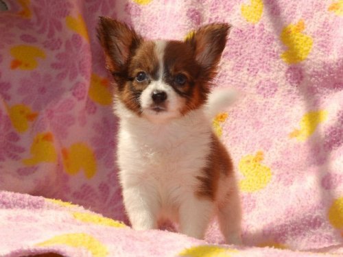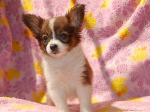 パピヨン ホワイトブラウン(かなり小ぶりで元気♪小動物のような小ささです) ♀(女の子) 茨城県【 ブリーダーズ 】