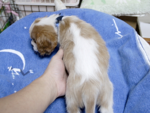 この度はとっても元気な子をありがとうございました。 見学の際は駅まで迎えにきていただき、説明もとても丁寧で安心しました。 空輸で送っていただき、ありがとうございました。 迎えてから一週間が経ち、家にも慣れて、へそ天で寝ています。 トイレトレーニングも、来た時から8割できていて、今ではほとんど失敗しなくなりました。 可愛く元気で、毎日元気に飛び跳ねています。(奈良県 女性)