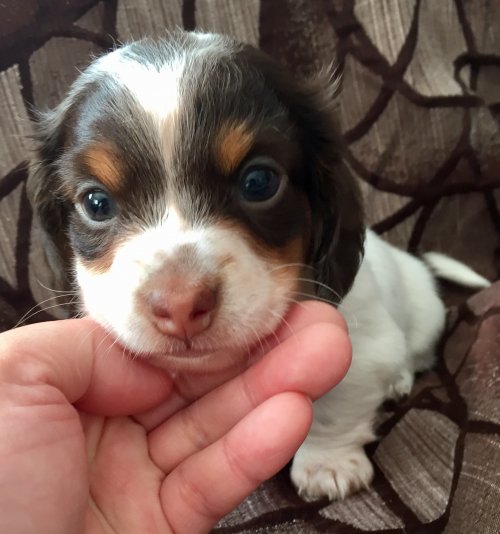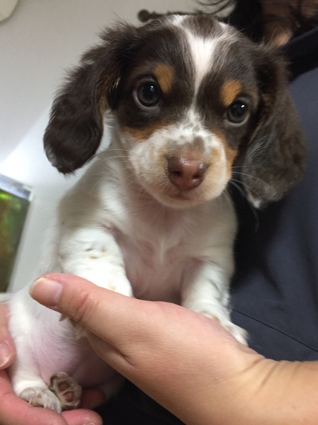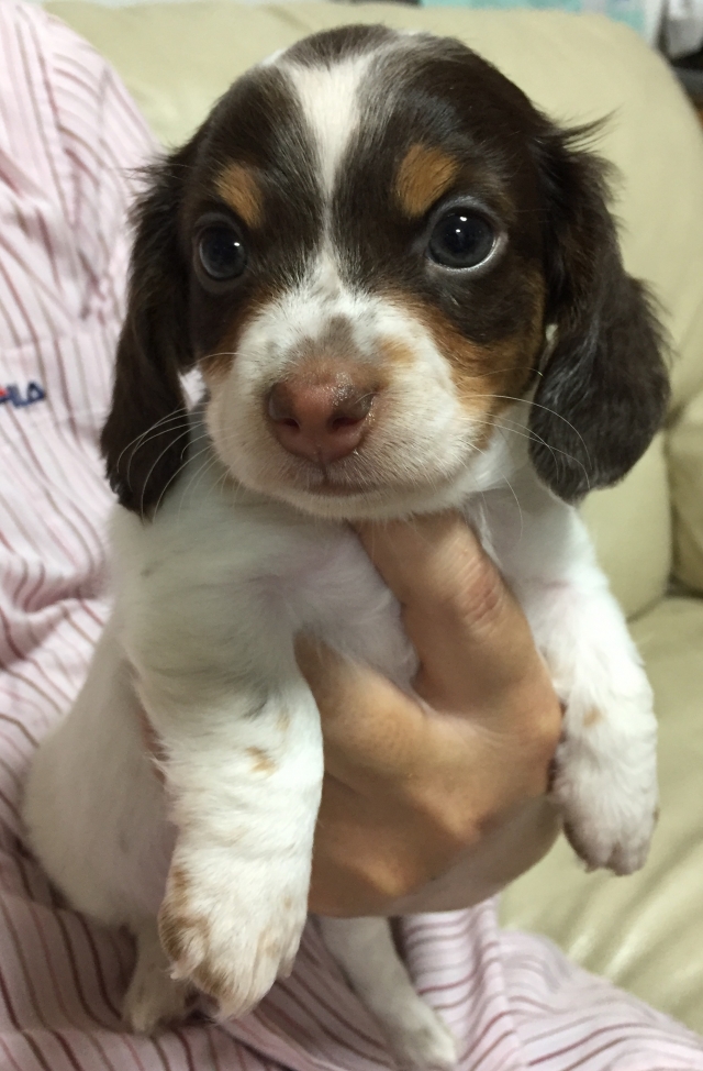 ミニチュア・ダックスフンド(ロング) チョコレート タン パイボールド ♀(女の子) 神奈川県【 ブリーダーズ 】