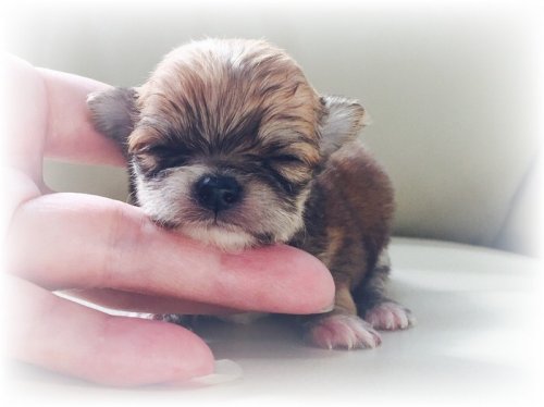 この度はとてもかわいい子をお譲りいただきありがとうございました。あまりにも小さくて不安でしたが、いろいろとお話させていただき安心して迎えることができました。また、ブリーダー様と連絡を取りあってから我が家に迎え入れたのが2日後という超スピードでしたが、快く対応してくださりました。伊窪ブリーダー様には感謝の気持ちでいっぱいです。(兵庫県 女性)