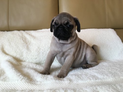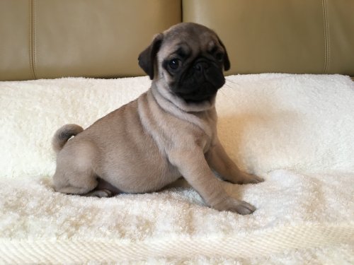 パグの飼育歴は30年以上になります。今年親の代から買っていた 黒パグを亡くしてから家を埋め尽くしているパググッズを見るたびに いつか新しい仔を迎えたいと思うようになりました。 北関東でブリーダーさんを探しているうちに木村様を知り、見学、購入の運びとなりました。 このたび性格も大変おおらかな素晴らしい仔犬をお譲りいただき大変感謝しております。 (茨城県 男性)