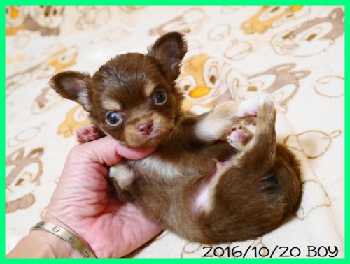 チワワ(ロング) チョコレートタン&ホワイト ♂(男の子) 千葉県【 ブリーダーズ 】