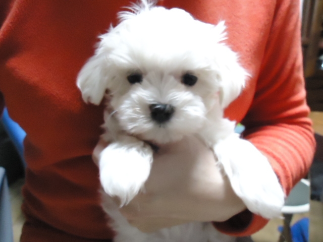 この度ご縁がありまして村島ブリーダーさんから可愛いマルチーズの男の子を譲って頂きました。犬を飼うことは初めてだったのですが2度ほど見学し、アドバイスも頂き、安心して子犬を迎えることができました。何かあれば電話でいつでも相談にのって下さるとのことで心強いです。子犬もとても元気でおトイレもすぐに覚えてとってもいい子です。ありがとうございました。(栃木県 女性)