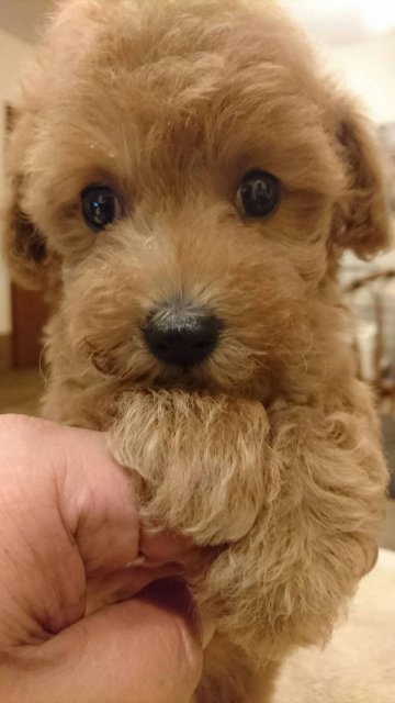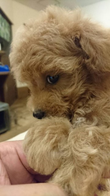 | コメント | 生後2ヶ月で600㌘とタイニーサイズの女の子です。 カラーはレッドに近いアプリコットです。 初めてプードルをお迎えになるご家族へのアフターサポートも万全です。 ぜひ、可愛いパピーに会いにいらしてください。 東北自動車道 黒磯インターチェンジ下車5分 東北新幹線 那須塩原駅より徒歩3分 |