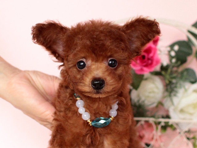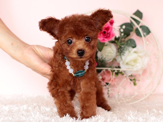| コメント | ■父 レッド 1.1キロ ■母 レッド 1.9キロ ■体重 9/28現在(2ヵ月) 580グラム ■成犬時予想 ティーカップ ★☆ やさしいお顔の激カワ!! プリンス!! ★☆ 毛量・巻毛たっぷり 真っ赤なレッドくん!! お顔立のとてもチャーミングな可愛い子です。 綺麗な澄んだ瞳は 魅力にあふれています。 天心爛漫な明るい性格の甘えん坊ちゃん☆ 人懐っこく愛嬌のある癒し系☆ 愛くるしい可愛さに思わず抱きしめたくなりますよ~♪ 小さくても食欲旺盛ですので 初めての方でも飼いやすい子です(^-^) ★ ワクチン 接種済 ★ PRA ノーマルクリアー 発症しません ★ 健康診断済 良好です!! |